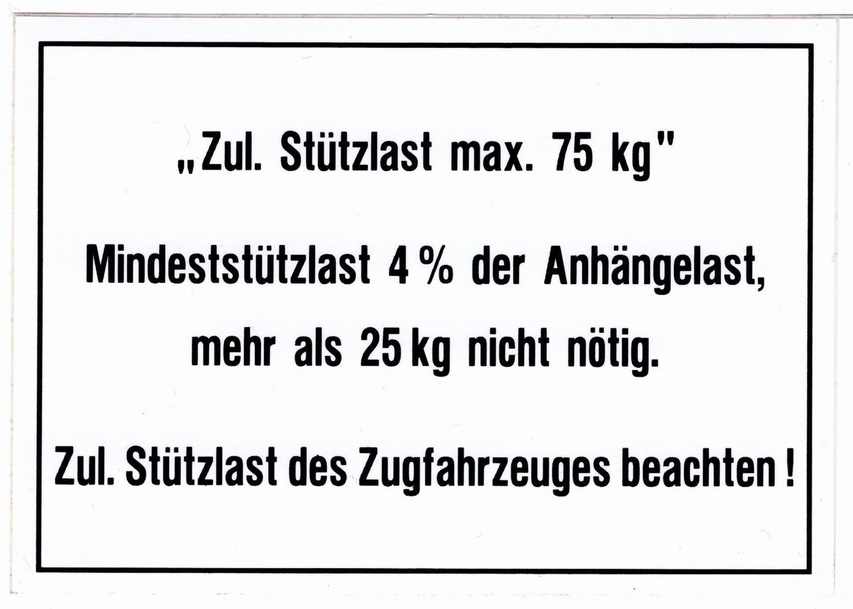Stützlastschild für Anhänger: Zul. Stützlast max. 75 kg, Stützlast Aufkleber